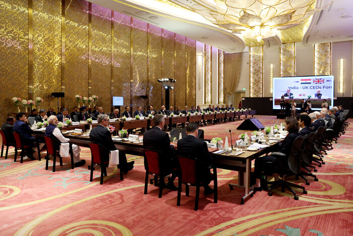 استارمر در سخنرانی خود در مجمع مشترک مدیران ارشد شرکت‌های هند و انگلیس در بمبئی، هند را «شریکی کلیدی برای آینده اقتصادی بریتانیا» توصیف کرد و گفت: «ما به‌دنبال شراکتی هستیم که رشد، نوآوری و اعتماد متقابل را هم‌زمان تقویت کند.» اما تحلیل‌گران در لندن این سخنان را در چارچوب «دیپلماسی نمایشگرانه» ارزیابی کرده و یادآور شدند که بسیاری از مدیران انگلیسی حاضر در هیأت همراه، هدفی فراتر از توسعه بازارهای هند دارند و در پی تأثیرگذاری بر جهت‌گیری اقتصادی دولت در داخل بریتانیا هستند.